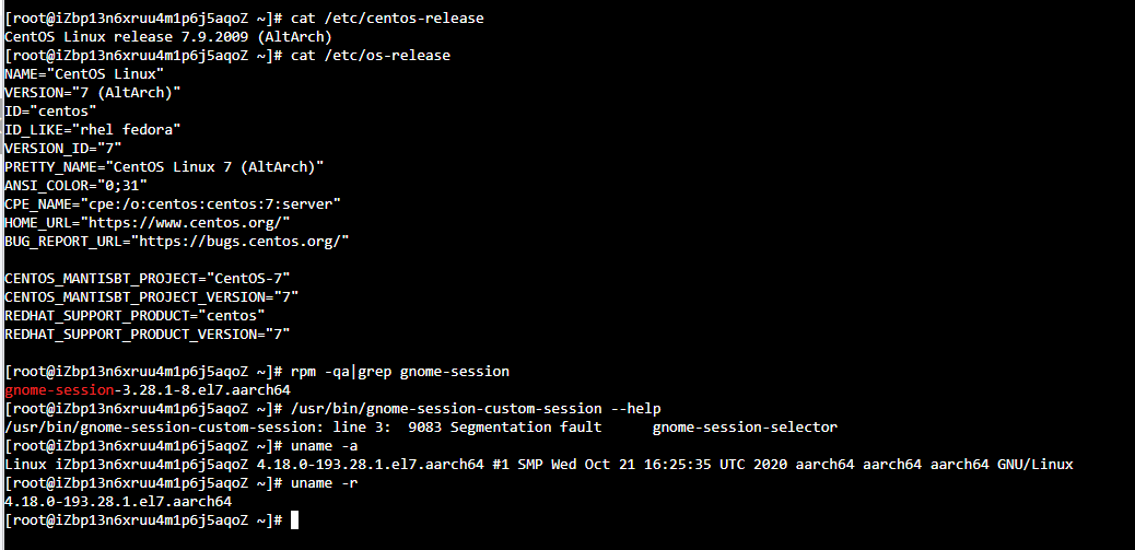 | 描述 | 安装gnome-session-3.28.1-7.an7.x86_64包后 执行二进制文件/usr/bin/gnome-session-custom-session --help发生core dump [环境信息]: 内核信息: # uname -r 4.19.91-24.8.an7.x86_64 操作系统信息: # cat /etc/os-release NAME="Anolis OS" VERSION="7.7" ID="anolis" ID_LIKE="rhel fedora centos" VERSION_ID="7.7" PRETTY_NAME="Anolis OS 7.7" ANSI_COLOR="0;31" HOME_URL="https://openanolis.cn/" BUG_REPORT_URL="https://bugs.openanolis.cn/" CENTOS_MANTISBT_PROJECT="CentOS-7" CENTOS_MANTISBT_PROJECT_VERSION="7" REDHAT_SUPPORT_PRODUCT="centos" REDHAT_SUPPORT_PRODUCT_VERSION="7" [期望结果]: 执行包中全部二进制文件不会发生core dump [实际结果]: 执行二进制文件gnome-session-custom-session时发生core dump /usr/bin/gnome-session-custom-session --help /usr/bin/gnome-session-custom-session: line 3: 10637 Segmentation fault (core dumped) gnome-session-selector Terminated | ||||