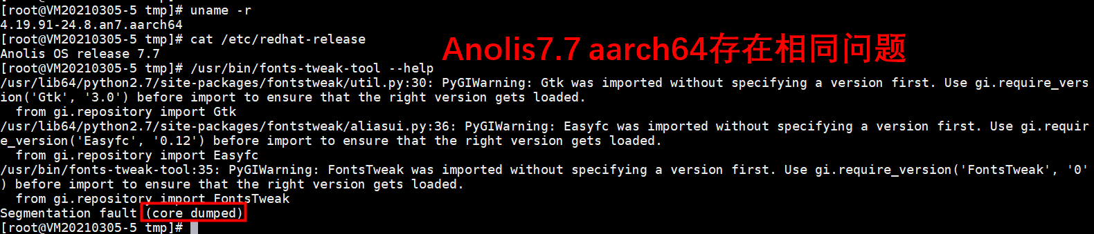 | 标题 | 0000358: [Anolis 7.7-4.19-x86][os]安装fonts-tweak-tool包后执行二进制文件fonts-tweak-tool发生core dump | ||||