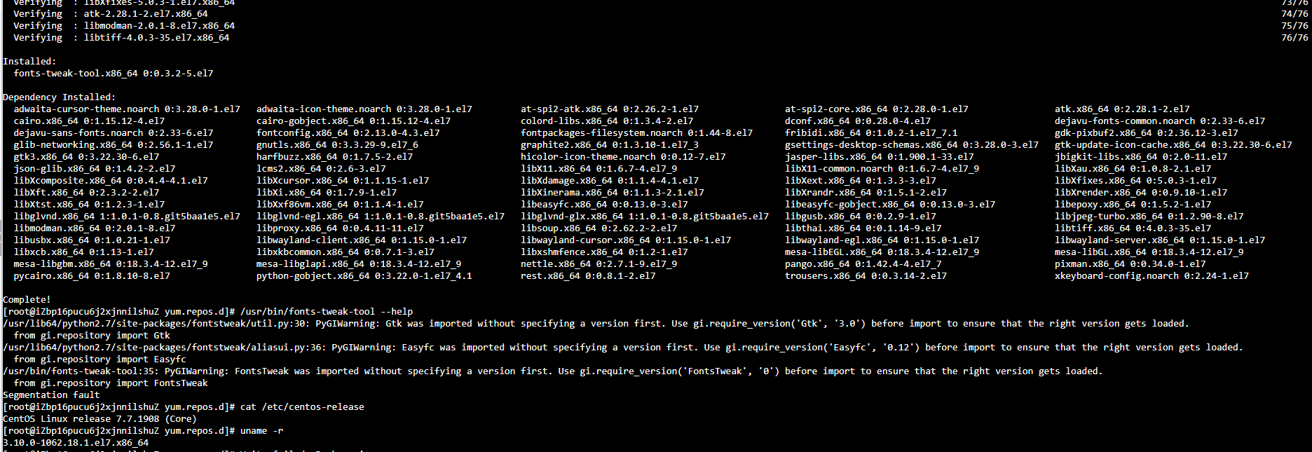 | 问题重现步骤 | yum -y install fonts-tweak-tool.x86_64 /usr/bin/fonts-tweak-tool --help | ||||