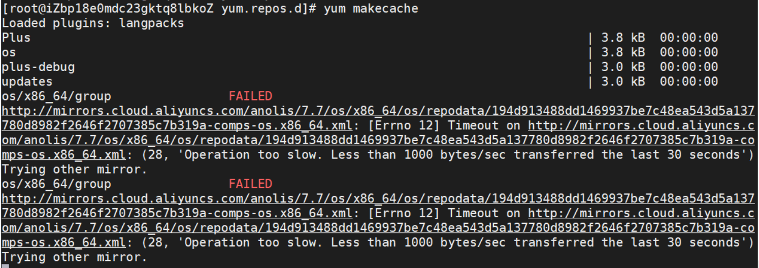| 2021-11-08 15:59 | kangwen429 | 标题 | [Anolis OS 7.7 vhd][ecs][x86_64]yum安装或者makecache时会报:[Errno 12] Timeout on $yum_repo:(28, 'Operation too slow. Less than 1000 by => [Anolis OS 7.7 vhd][ecs][x86_64]yum安装或者makecache时会报:[Errno 12] Timeout on :(28, 'Operation too slow. Less than 1000 by |