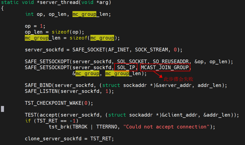 | 标题 | 0000592: [Anolis 8.2-4.19-aarch64] ltp的syscalls类用例accept02在测试过程中将socket可选项中的level设置为SOL_IP,name设置为MCAST_JOIN_GROUP,会设置失败 | ||||